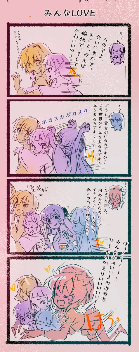 ちっさいのが揃ったら可愛すぎる😉って思って描いたのに気づいたら沙都子ちゃんと梨花が小さくない🙄オチのない四コマ