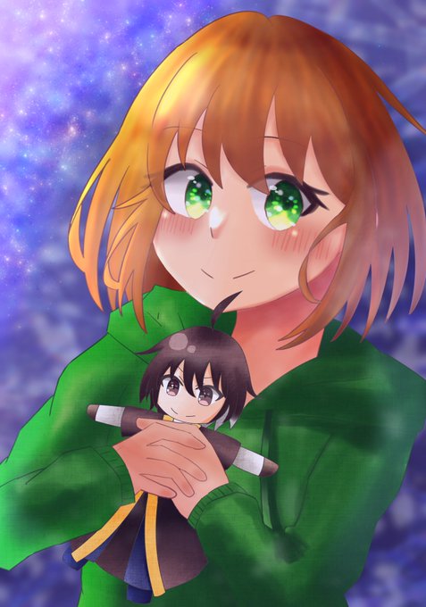#Abellpic アベルさんのぬいぐるみを持ってるアテネちゃん描きました!
