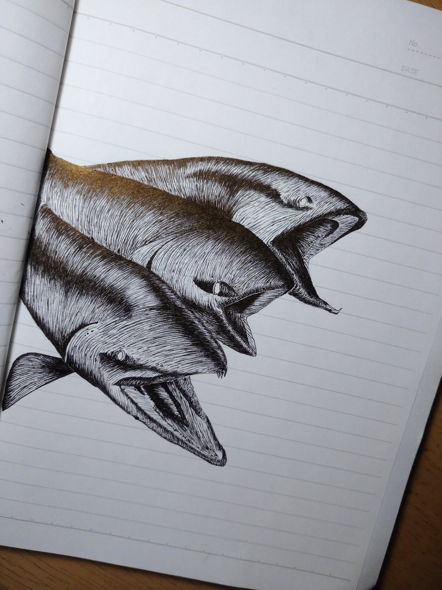 初めて黒以外の色を使いました❗ #絵描き繫がれ #絵 #ボールペン画 #ペン画を流してペン画民を増やそう #ペン画 #発達障害 #アスペルガー #自閉症スペクトラム #arte #uni #unijetstream