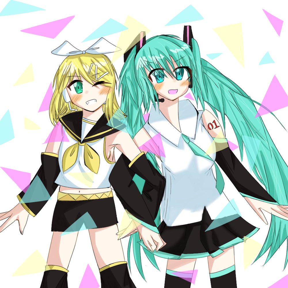 #ボーカロイド #鏡音リン #初音ミク #イラスト 下塗りですが…(一応ワンク)
