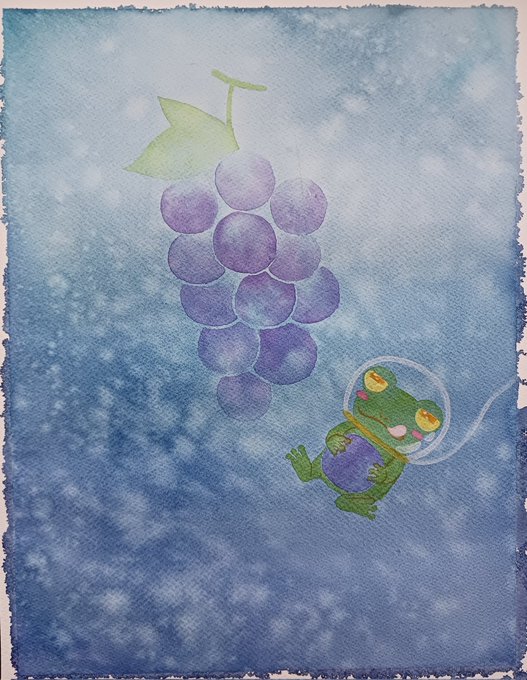 5 65 #アナログ絵 #水彩イラスト #透明水彩 🌊海ぶどう🍇 🐸💕 23/07/05 19:24
