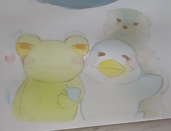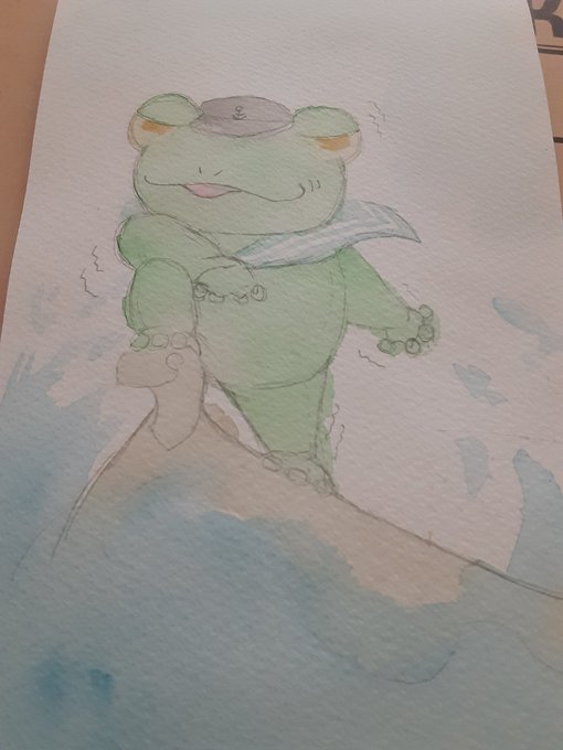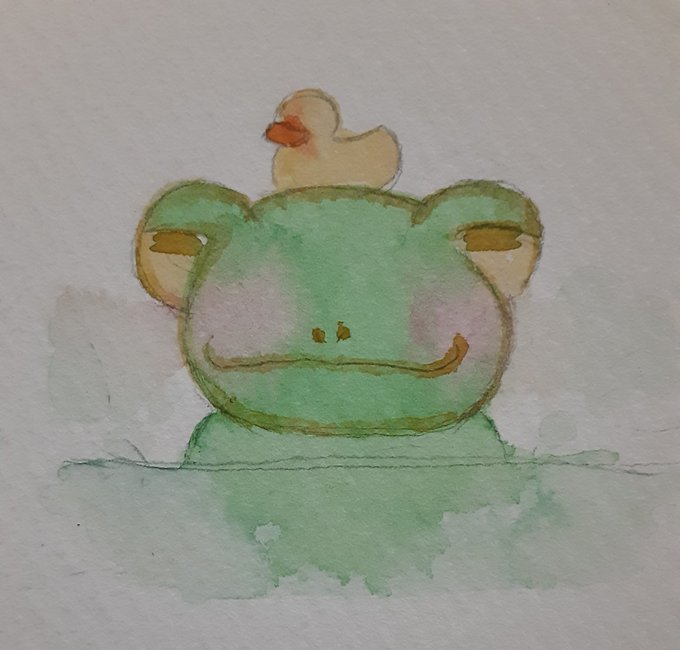 #アナログ絵 #水彩行進曲 さら~り🖌️ 🐸🌟
