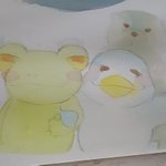 1 9 #水彩行進曲 #アナログ絵 🐧「北極から来ました🎵」 🐸(寒い❄️) 白🐻「…君は南極でしょ」 🐧「バレタ‼️💦」 🐸(どちらにしろ寒い❄️) …本気で間違えてました💦 なので、白🐻さんは追加キャスト🌟 23/03/23 09:10