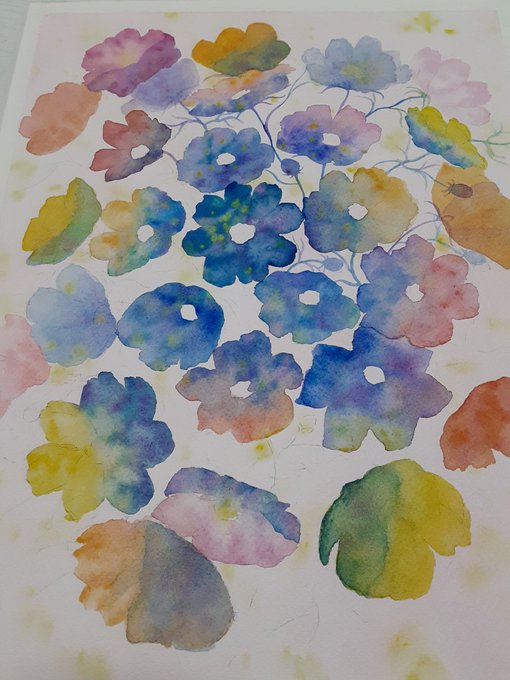 5 67 #透明水彩 #アナログイラスト #水彩イラスト でけたっ🎶 本当は昨日、前段階をお見せしようとしたら、ツイート出来なかったので…( ´-ω-)💦 23/07/03 11:14