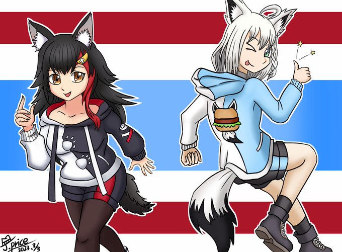 8 26 電繪:狼媽與白狐 #みおーん絵 #絵フブキ 23/03/03 19:01