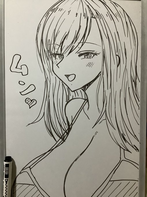 1 0 マーカーが太いから大変😫 #イラスト練習 #ホワイトボード 23/04/26 21:02