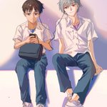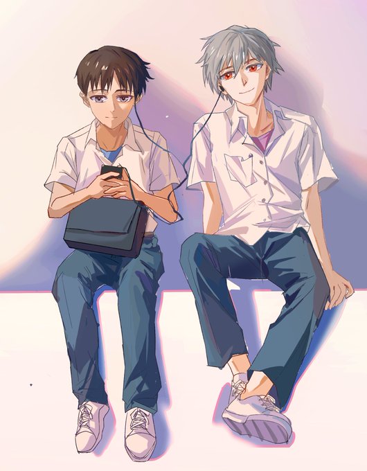 #100日チャレンジ 日绘day6(······) #エヴァンゲリオン #渚カヲル #碇シンジ 拿前几个月的线稿简单上了个色,懒得调型和继续细化了······
