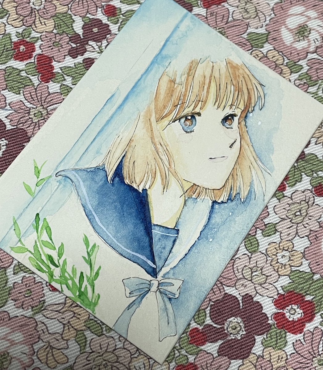 1 12 本日の楽描き🎶 アクリル、水彩色鉛筆、カラーインクは持っているのですが、なぜか持っていなかった水彩絵の具を数十年ぶりに購入🎨 勝手が違ってたのしい💕 とりあえず、練習٩( 'ω' )و #オリジナル #イラスト #水彩絵の具 23/05/25 23:17