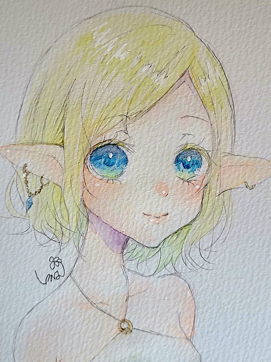 落書きエルフの女の子!! マイメリさんと仲良くなれない。 キラキラ絵の具も使ってみた❤