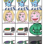 #今月描いた絵を晒そう 連ツイ失礼しますw いつも通り トレス、パロディネタ、中の人ネタなどなどw サメバーンの像(資料)のおかげで 描きやすくなったのはありがたいw やっぱ クロノトリガー、クロノクロスの曲は最高だと思うんだ。つづく。