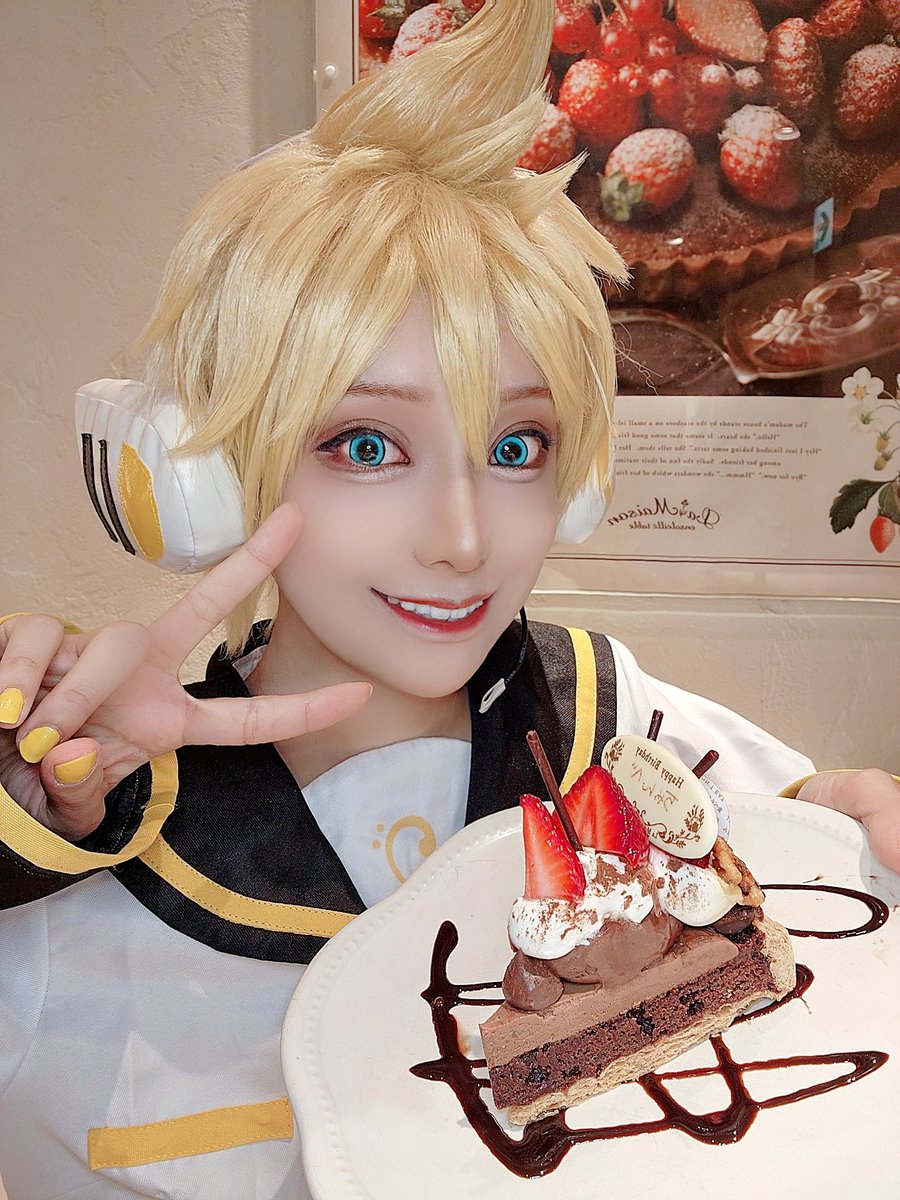 速報! ボカロのレンくんリターンズです!イェイ!🌟 ゆちが誕生日ケーキくれた🎂💛💛💛 #アコスタ池袋