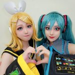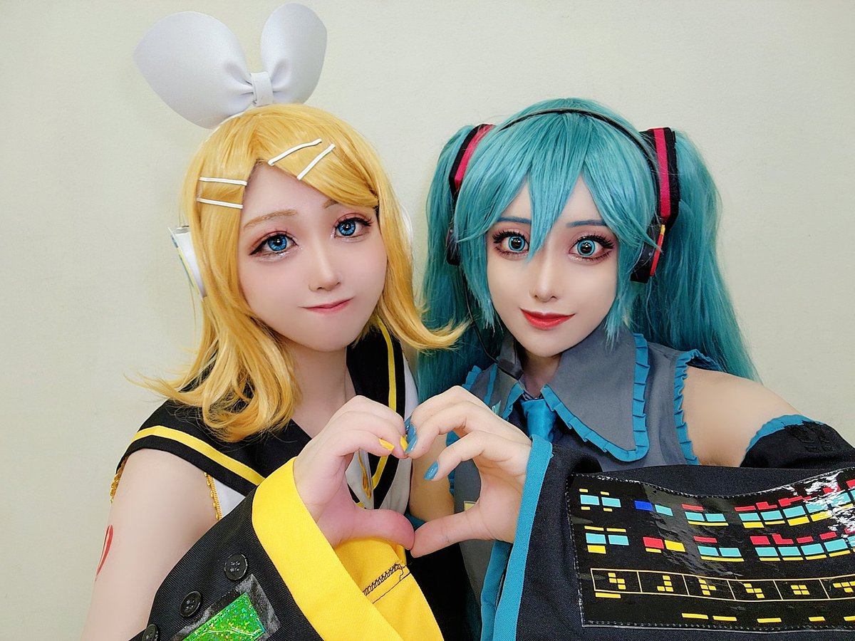 そくほう💛💚!! アコスタ2日目はボカロで初音ミク~☺️!! 女子やるのめちゃめちゃ久しぶり😂💕 ゆちの鏡音リンと一緒だよ! 皆さんお会いしてください~!✨️ #アコスタ池袋