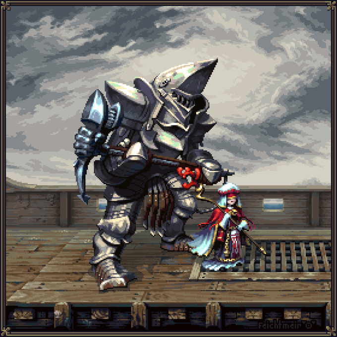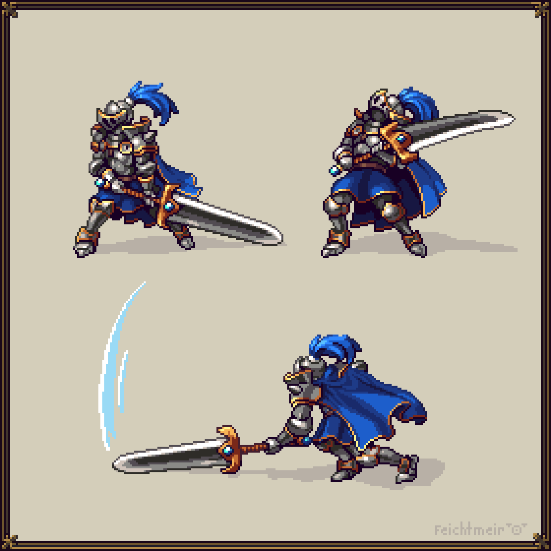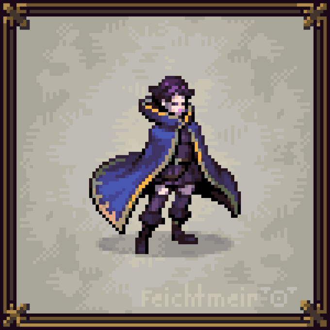 I experimented just for fun with a #pixelart remaster: 1.) original portrait, GBA, #FireEmblem 2.) up-scaled 150%, handcleaned 3.) color adjustment for LCD 4.) full reimagination/remaster added my own style, some more body and a lot of changes.