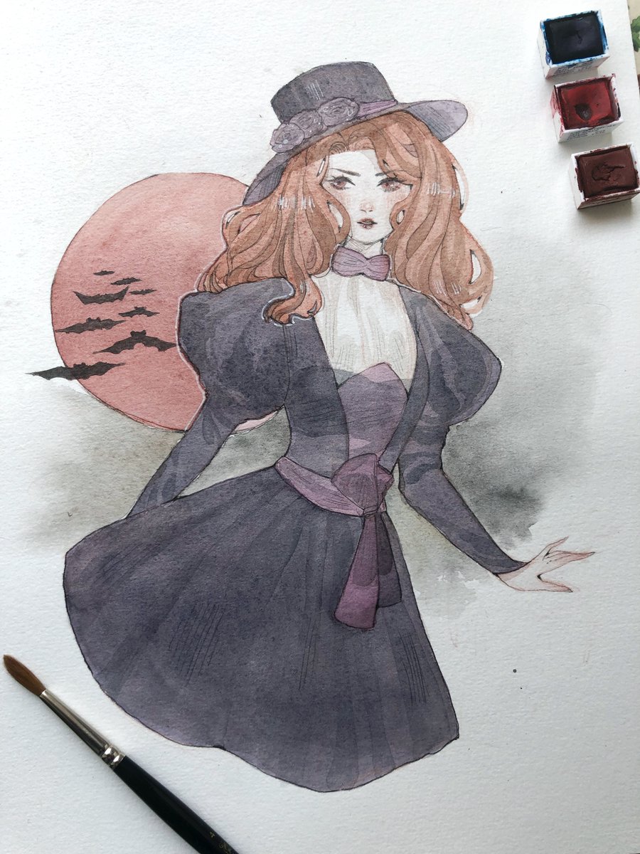 Watercolor illustration for witchtober: vampire🦇 #ArtistOnTwitter #drawtober #inktober2021 #artwork