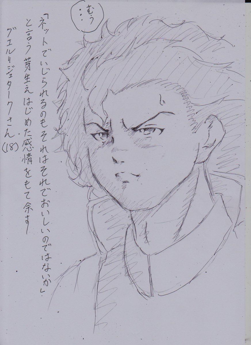 #水星の魔女 何か皆さんの反応が悪いと思ったらタグ付けてないやん。 て事で 「髪型がめんどいので描くのを尻込みしてたグエルたんをとうとう描いてみた」