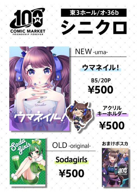 【C100】ウマネイル! | シニコ #pixiv pixiv.net/artworks/10022… B5/20P/¥500 勝負服のイメージネイルをしてるウマ娘ちゃんたちを描きました🐴💅 #C100 #C100新刊 #ウマ娘 #トーセンジョーダン