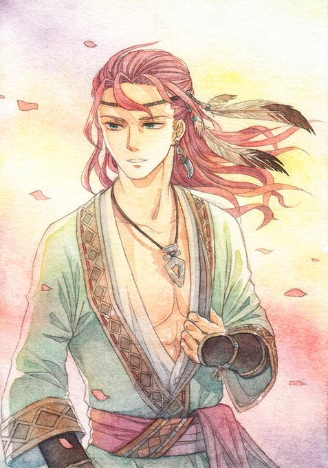 Jerome from Triangle Strategy for an art trade with @AsterNemoralis I must confess that the reason I picked this character was the pink hair and the feathers. ( ̄ω ̄)