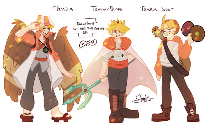 hey look, designs for techno, tommy, and wilbur that i will never draw again! they each have hardcore hearts somewhere :) #technofanart #wilbursootfanart #tommyinnitfanart