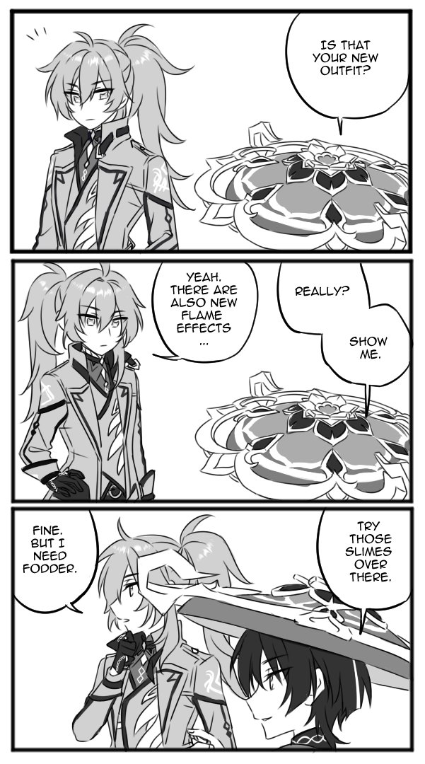 238 1623 I came back to genshin and wanted to show off the Diluc skin I bought to my friend 😭😭 23/01/02 04:21