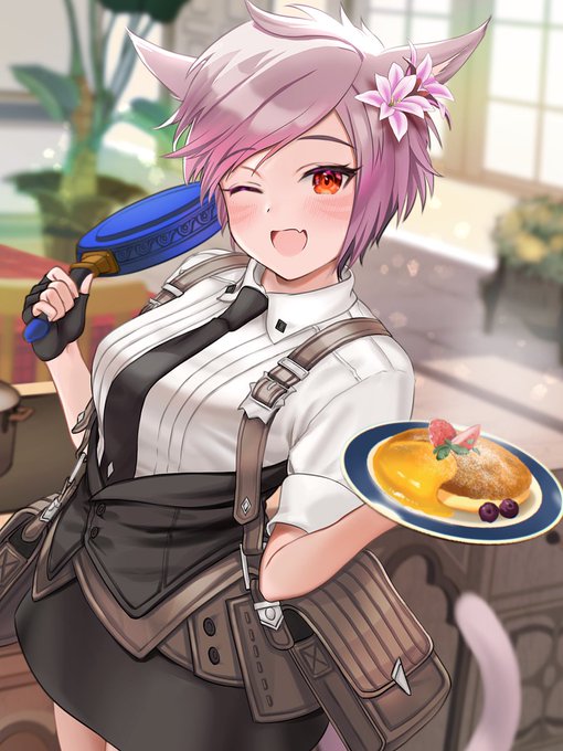 調理師ミコッテちゃん!🌈🥞☕️ #ff14 #ff14art #FF14イラスト #ミコッテ