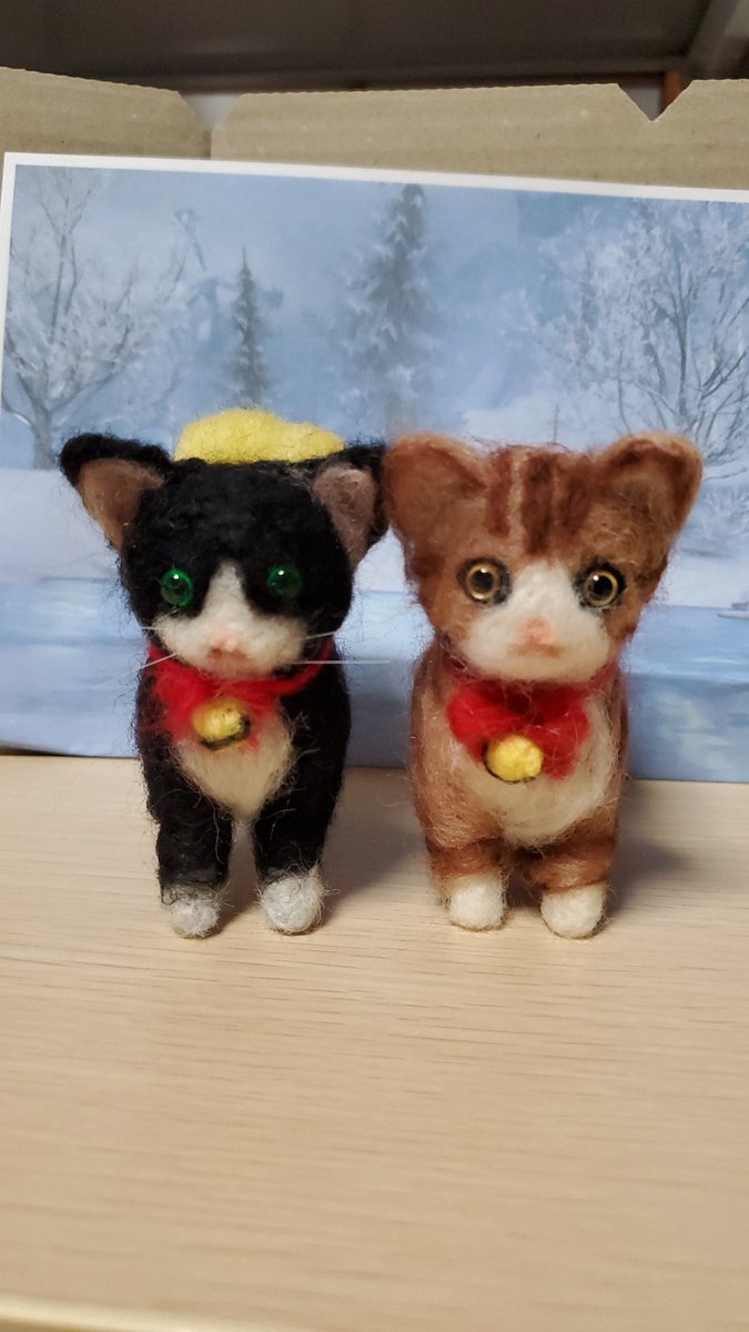 #羊毛フェルト #猫 以前に中国製の羊毛フェルトキットを購入して放置してたのもを作ってみた バーコードで作り方が解ると書いてあったが 読み取るとTEXTとは出るが作り方はでない、飛べない 仕方ないので画像を見て雰囲気で作成 安かったけどダメだろw