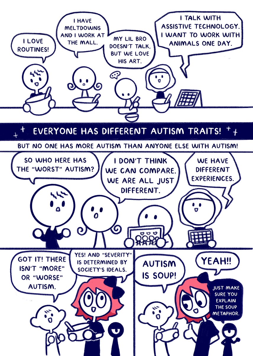 What does “The Spectrum” mean? Do some people have “more Autism” than others? For #ASDComicTakeover I covered these topics, to help explain the extremely individual and incomparable nature of the autism spectrum! #AutismAcceptanceMonth #RedInstead