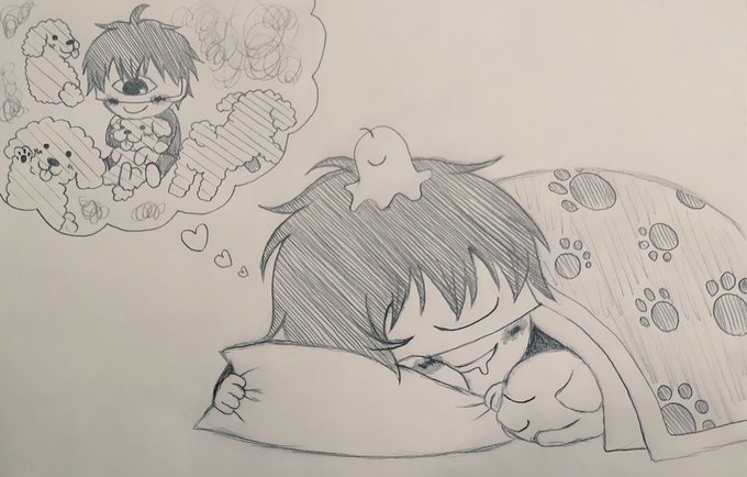 14 101 瑠斗「(勝手に着いてきたんだが…)」 ずっと描きたかった落書き #せんたんあーと #アモ誰ロク 21/12/10 14:31
