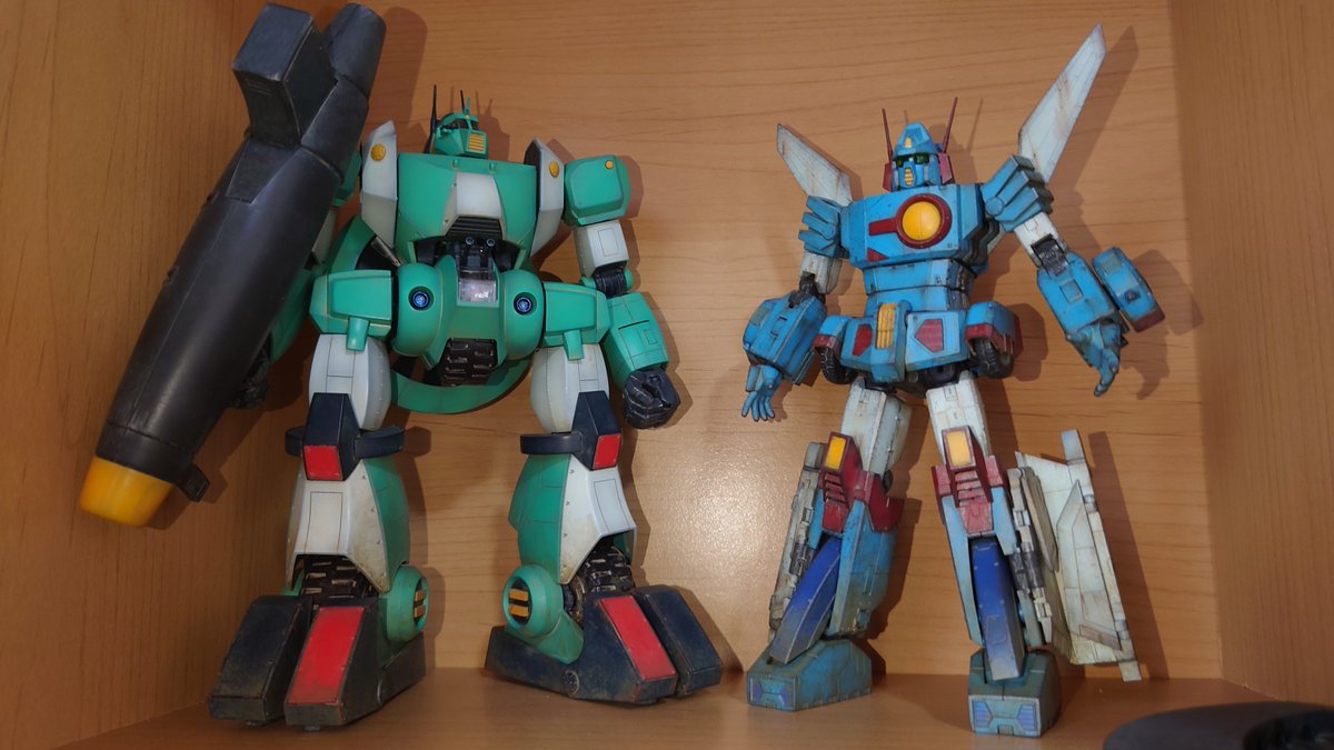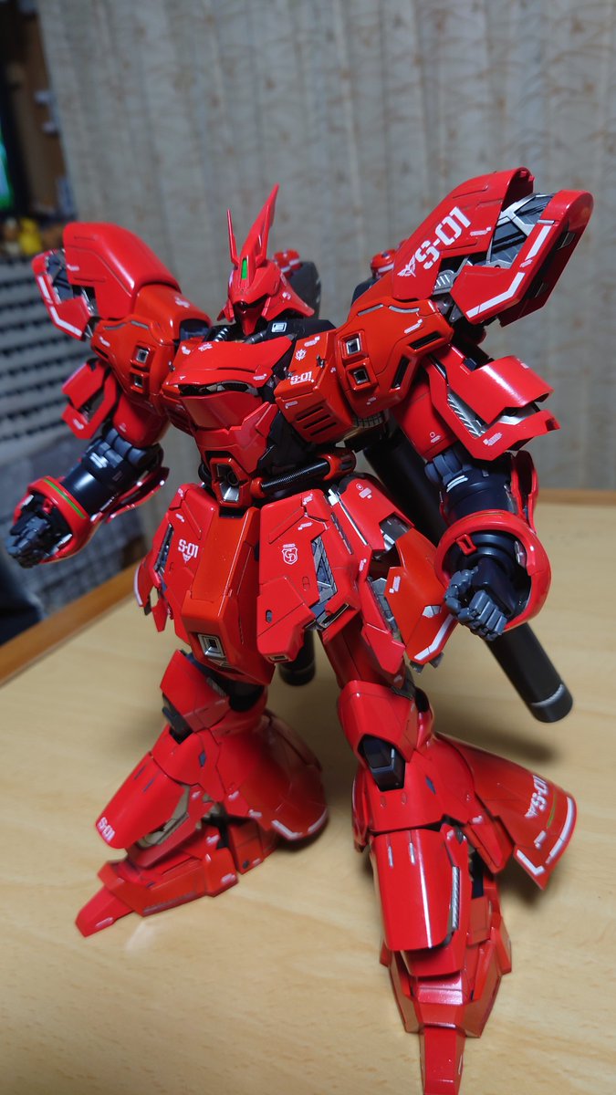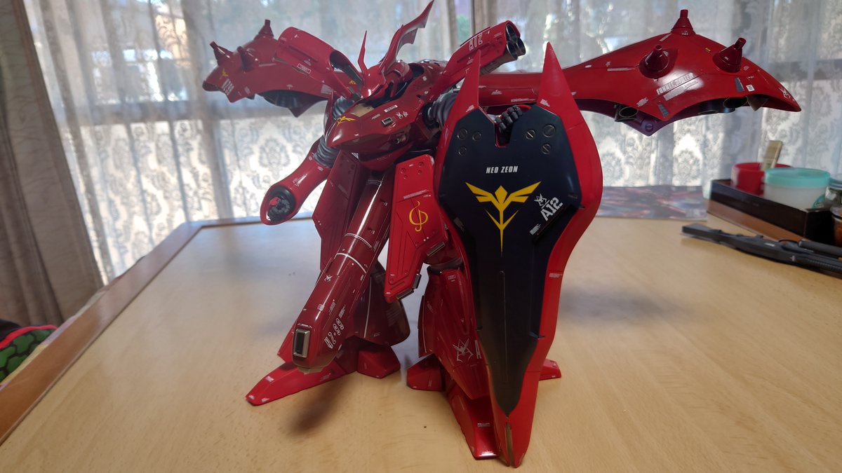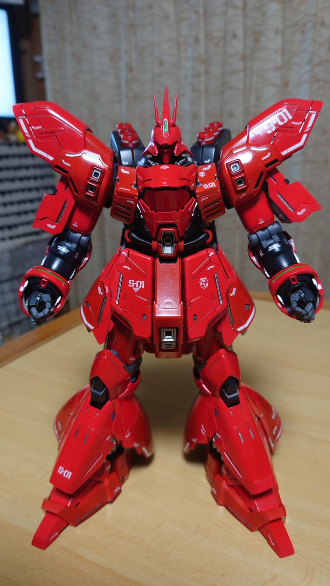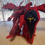 #今年作ったプラモ晒そうぜ ナイチンゲールは間に合わないので、MGサザビー(カトキ版)とRE/100ヤクト・ドーガ(ギュネイ機)の2つですね。十数年ぶりにプラモ作りを再開してみて、楽しく作れましたヨ。