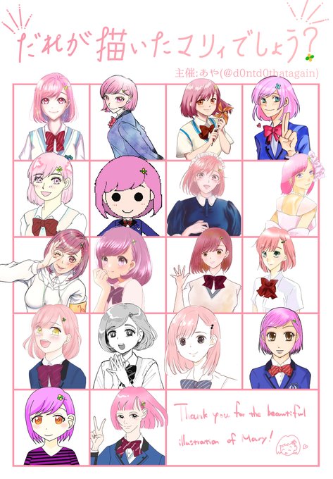 みんなの描いたマリィちゃんが見たい! って私のワガママな願いを叶えてくれて、マリィちゃんがいっぱい集合🫶💕 どれが誰のマリィちゃんか当ててみてね! 美しマリィから期待のルーキーの作品まで勢揃い💓 正解見たい方はリプへ👇 #あなたの描いたマリィちゃんが見たい