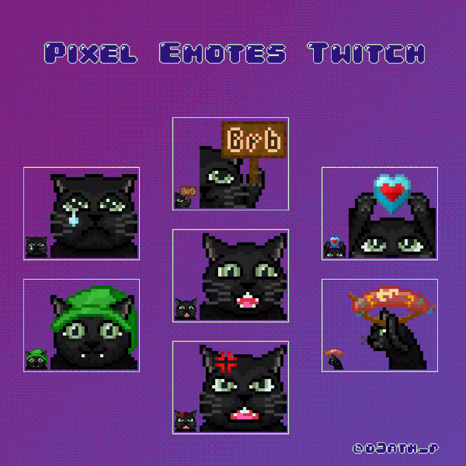 Pack of pixel emotes from a cute cat assistant named Jackie, co-owner of @NaivaklamThe stream. LOL ❤️ #Pixel #Room #Animation #neko #Pixelart #RPG #Sprite #Commission #Twitch #Emotes #Pixelartist #CommissionOpen #Cat #ドット絵