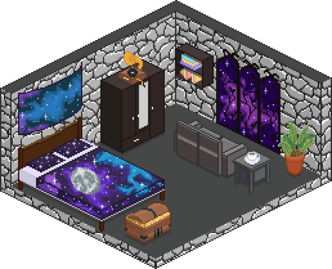 I loved making the night sky and every detail of this room. ❤️ #pixelart #commissionsopen #gamer #isometric #ドット絵