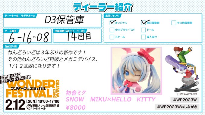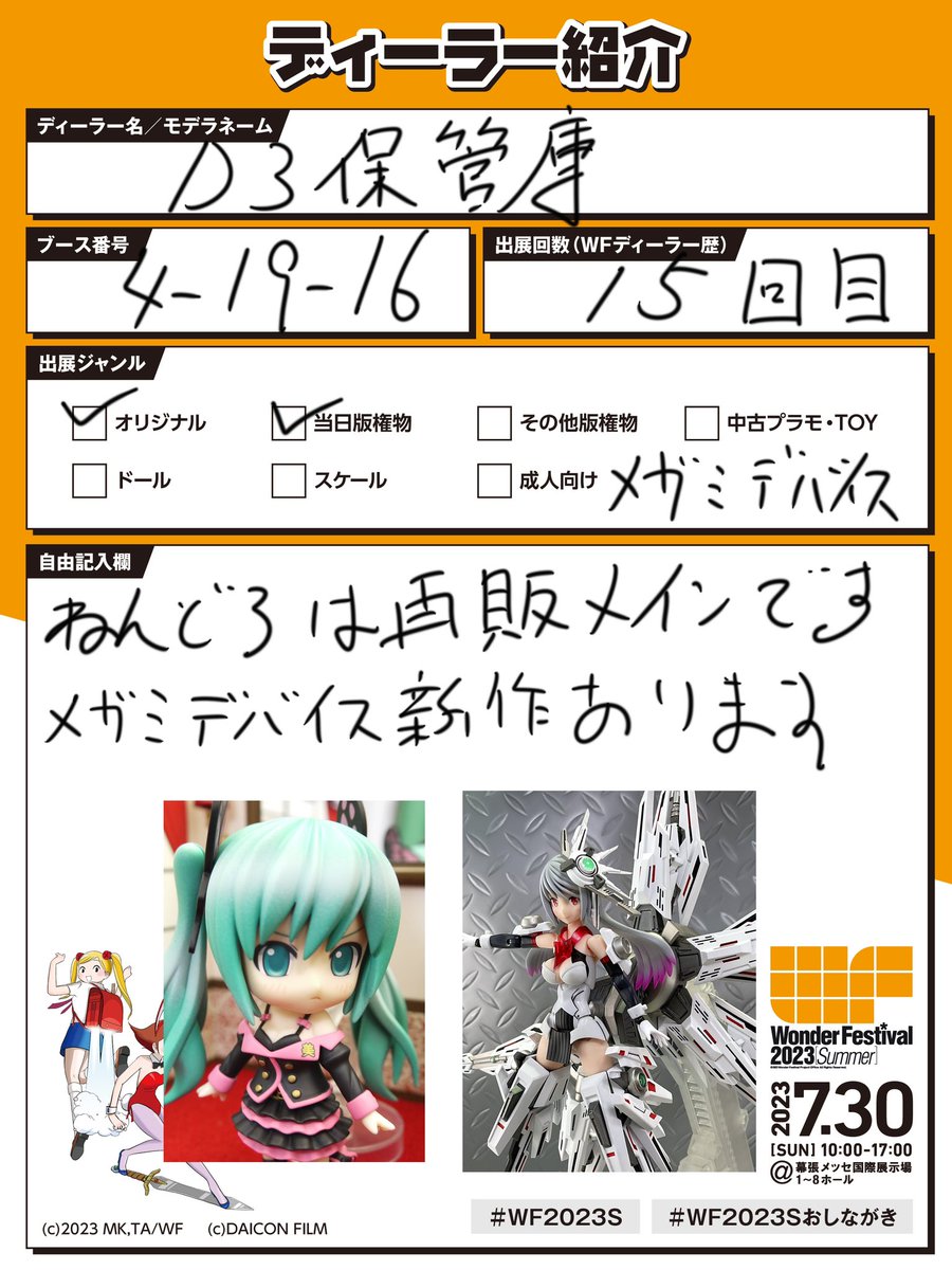 12 15 2023ワンフェス夏参加いたします! 卓番 4-19-16 ねんどろいど は再販メインになります〜 #wf2023s #ねんどろいど #初音ミク 23/07/23 18:33