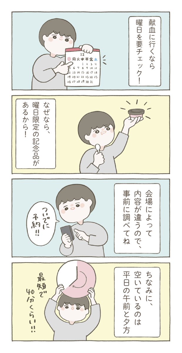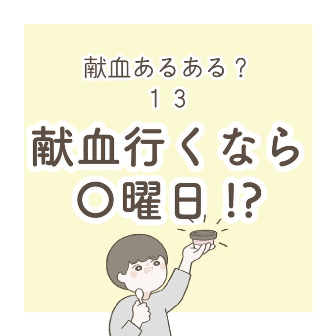 1 3 献血あるある?⑬ 「献血行くなら◯曜日!?」 #献血 #あるある ? #アイス #漫画が読めるハッシュタグ 22/02/14 11:18