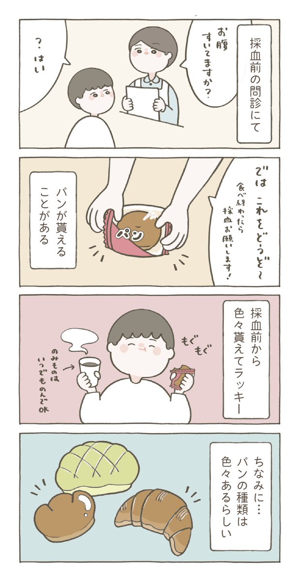 1 4 献血あるある?㉗ 「裏ワザ?」 #献血 #あるある ? #パン #漫画が読めるハッシュタグ 22/02/28 08:21