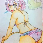 #オリジナルイラスト #色鉛筆 #バニーガール 胸、尻、足、背中が程よく露出してて素晴らしいと思いませんか? 尚且つ、うさぎ要素🐰で可愛さを演出 最高です( ゚∋゚) ちなみに、白より黒派、網タイツより黒タイツ派です(/▽\)♪