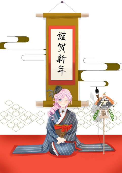 7 51 書初め #Luillust #鷹嶺ルイ #holoX #イラスト #振袖 22/01/17 22:42