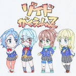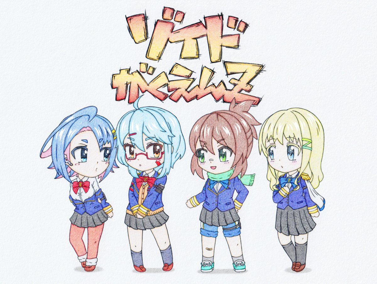 【・:*+.初の交流イラスト.:+】 シャノン達がソフトボールの助っ人の助っ人として誘われる前の「最初の出会い」をモチーフにデフォルメイラストを描いてみました♪( ´▽`)/ 可愛くデフォルメできてたら良いなぁ(*´ω`*ゞ 使用画材:水彩色鉛筆・不透明水彩絵具 #ゾイド学園Z #アナログイラスト twitter.com/shioy_bz/statu…