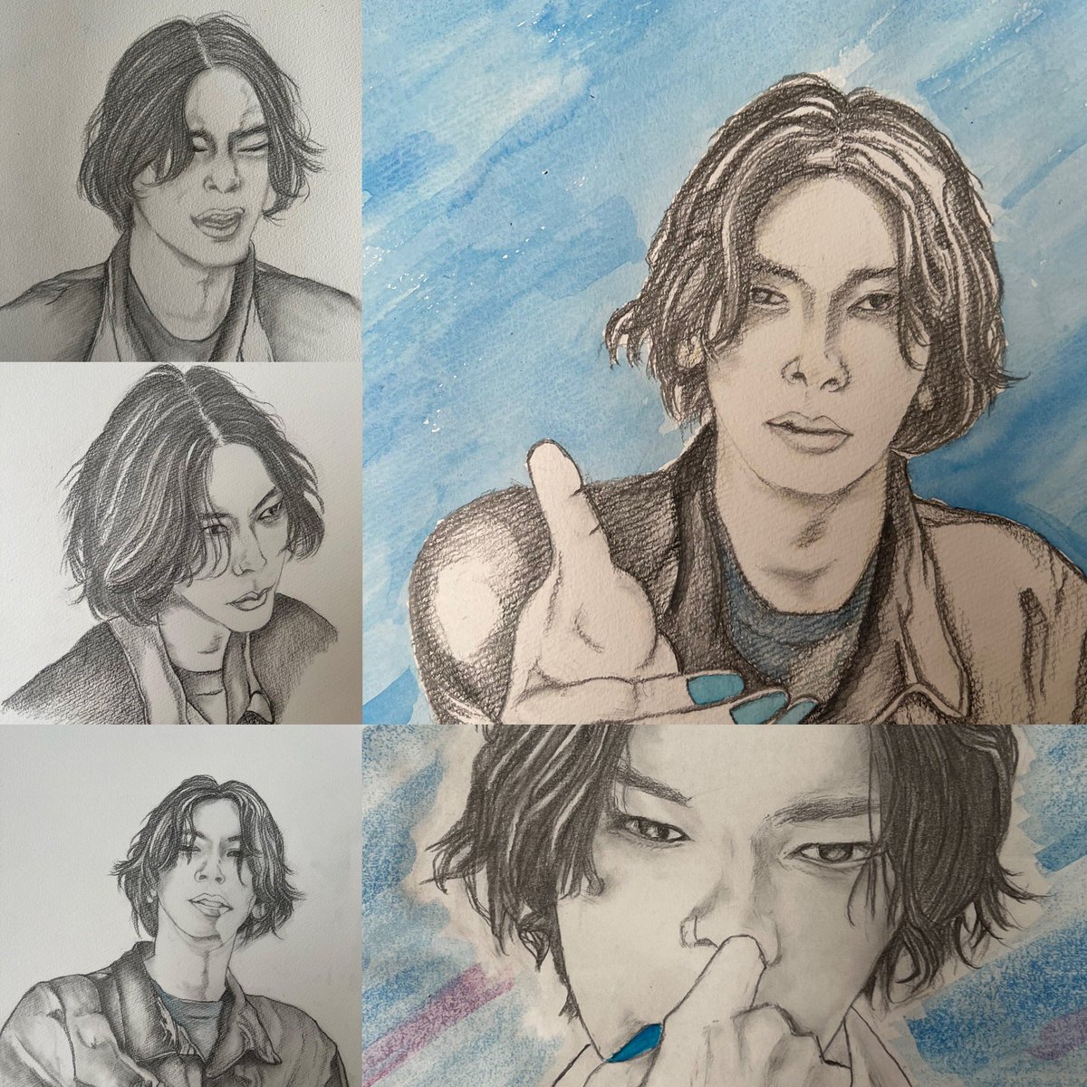 今月は 誕生祭もあって 初めて 水彩で描いてみました☺️ 見て頂いて ありがとうございます✨ 両眼解禁とセンター分けは 難しかった😅 #今月描いた絵を晒そう #米津玄師 #鉛筆画 #ありがとうございます 。
