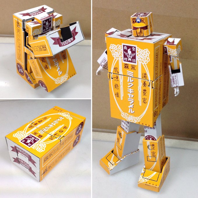 [ #ペーパークラフト ] 明治サイコロキャラメルの箱で超完全変形オモッチャマを作ってみた! 動画→ youtu.be/zzLU_l0dfOY #サイコロキャラメル #プロ図工作家 #夏休みの公式宿題2016 #拡散希望
