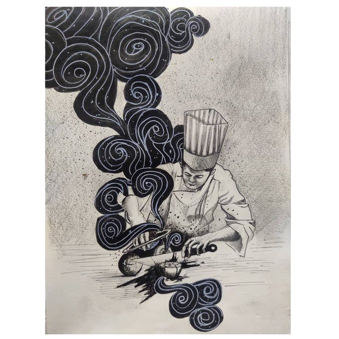 Day 22 of 31. Chef Galactic Chef. Source- Pinterest Medium- Black ball pen, Black marker, and White rolly gel pen on paper #inktober2020 #inktober #inktober2020day22 #inktoberday22 #chef #ChefFriends #illustrationartists #illustrator #blackandwhite #galaxy
