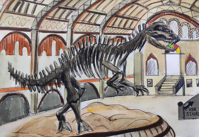 Day 24 of 31. Dig Medium- Water Color and black pilot pen on paper. #inktober #inktober2020 #inktober2020day24 #inktoberday24 #dinosaurs #JurassicPark #JurassicPark