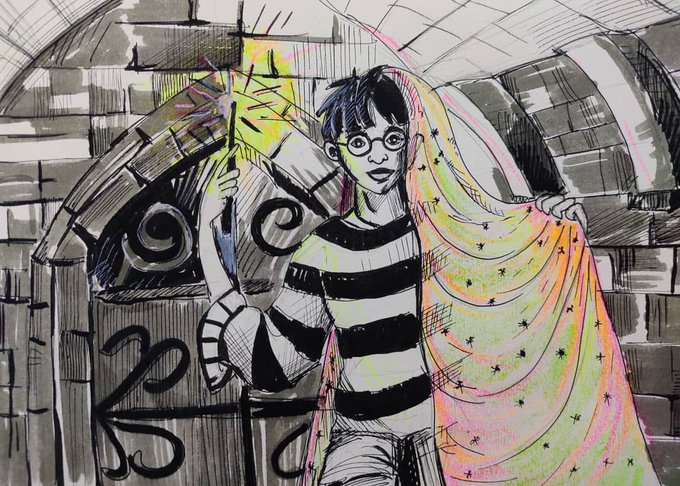 Day 26 of 31. Hide The Invisibility Cloak. Medium- ball point pen, book highlighters #inktober #inktober2020 #inktober2020day26 #inktoberhide #drawdaily #HarryPotterAtHome #HarryPotterMemes #Halloween2020 #halloweencostume #potterhead