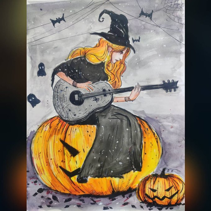 Day 27 of 31. Music 🎵🎃 Medium- Watercolor on paper. #inktober #inktober2020 #inktober2020music #inktober2020day27 #Halloween #halloweencostume #Halloween2020 #HalloweenParty #musician #HalloweenCountdown