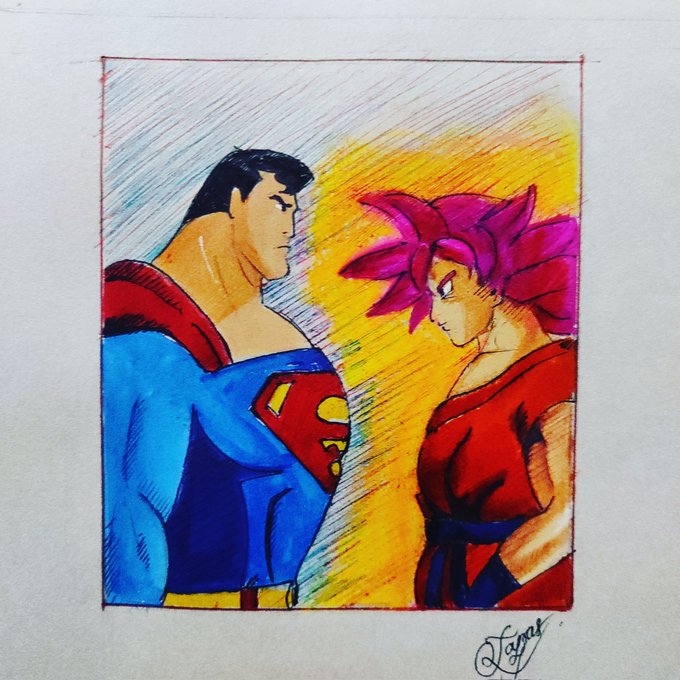Inktober 2021 Day 17 Prompt-Collide #inktober2021 #Inktober #collide #DragonBallSuper #DragonBall #superman #Goku #gokuvssuperman
