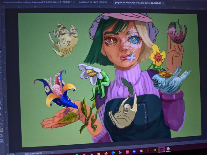 Having a bit of fun painting this witch's creepy little plant babies #wipart #digitalart #illustrationart