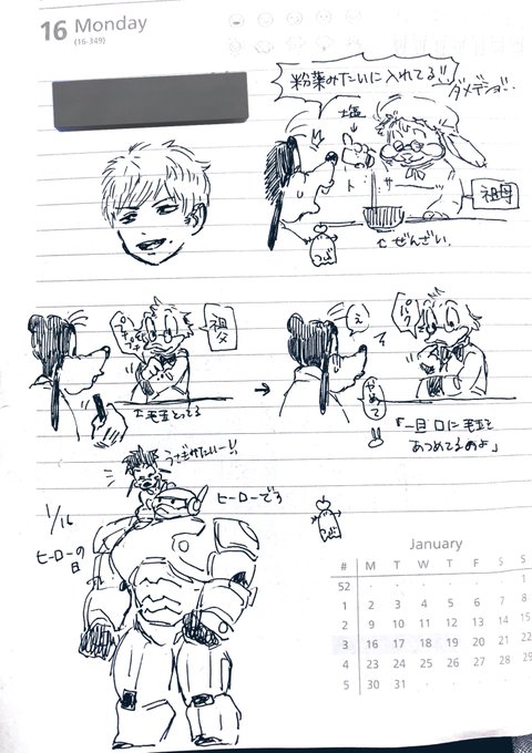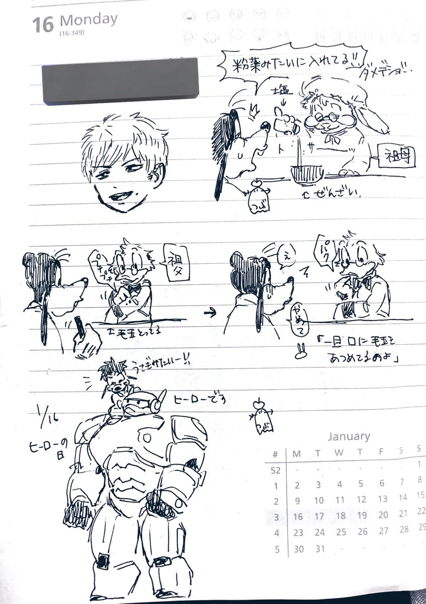1 9 今日の分の落書き 祖父母宅に居候してるので当分笑いと戸惑いが絶えません🌞 23/01/16 19:42