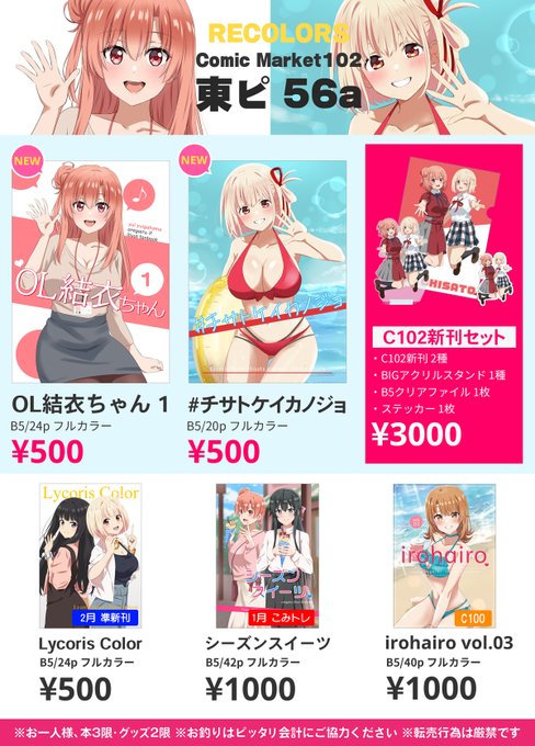 C102メロンブックス様にて委託させていただいております。既刊なども取り扱っていただいています。どうぞよろしくお願いいたします。 「OL結衣ちゃん 1」 melonbooks.co.jp/detail/detail.… 「#チサトケイカノジョ」 melonbooks.co.jp/detail/detail.…
