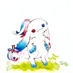 9 43 #人外版深夜の真剣お絵描き60分一本勝負 「アナタが考えるトリコロールカラーを使った人外」 💙🤍❤️ ちょっと小柄なすだまの子、勝ち気なところがある。 21/10/25 00:04