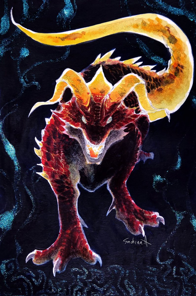 ふたばねこ様にて本日6/4㈰から開催の #RPG展5 に参加させて頂きます! 暗がりから冒険者達を狙うドラゴンを描かせて頂きました🐲 会期中よろしくお願いします~~ッ!