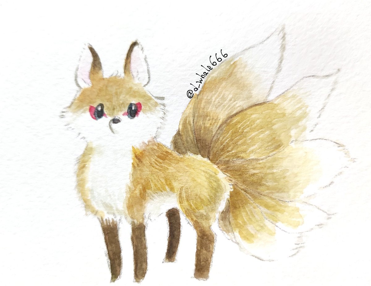 #人外版深夜の真剣お絵描き60分一本勝負 「九尾の狐」 ふわふわ尻尾